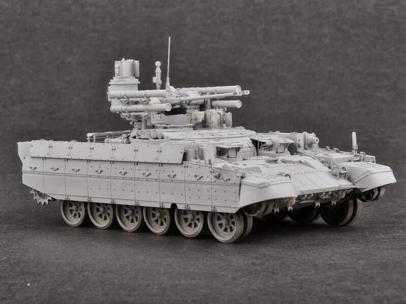 В самый разгар нашей тагильской выставки вооружений, китайская фирма "Трумпетер" решила преподнести "сюрприз" моделистам, опубликовав на своей странице в Фейсбуке фотографии тестовой сборки модели БМПТ в масштабе 1/35. Собственно вот они: